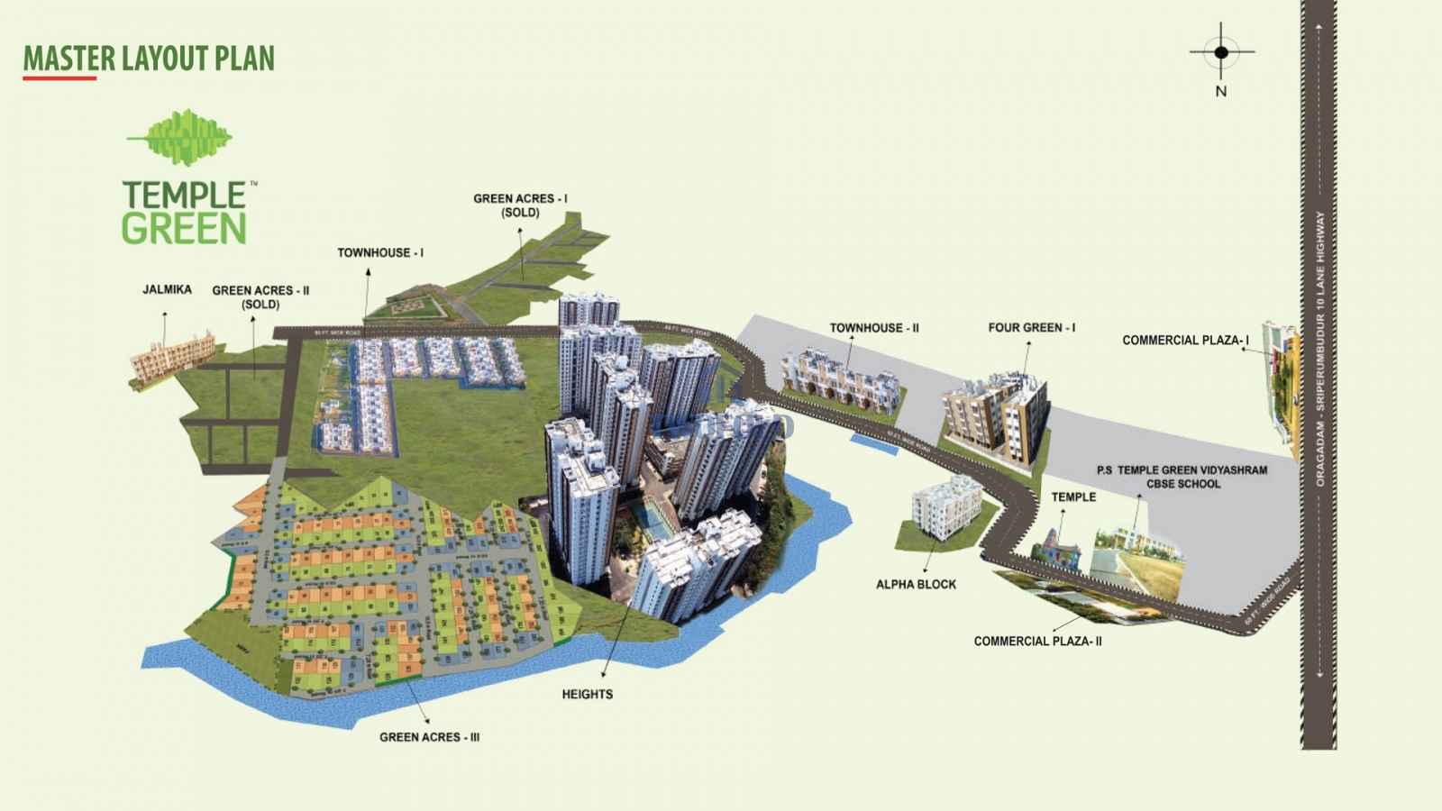 Temple Green is a world of fine living thoughtfully conceptualised to lead a comfortable and convenient lifestyle at Oragadam, the gateway to Chennai City. Developed by Arun Excello, this active integrated gated community spread over sprawling 100 acres on the lap of Mother Nature is a home to 5000+ happy residents living in over 2000+ lifestyle apartments with world-class leisure indulgences.