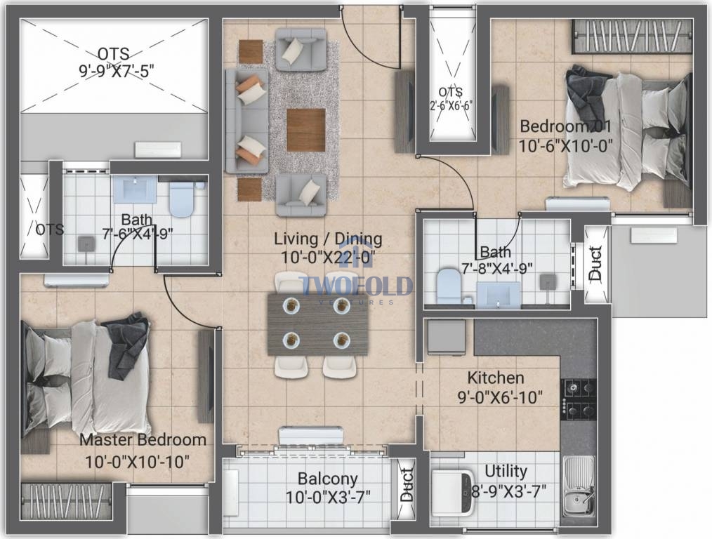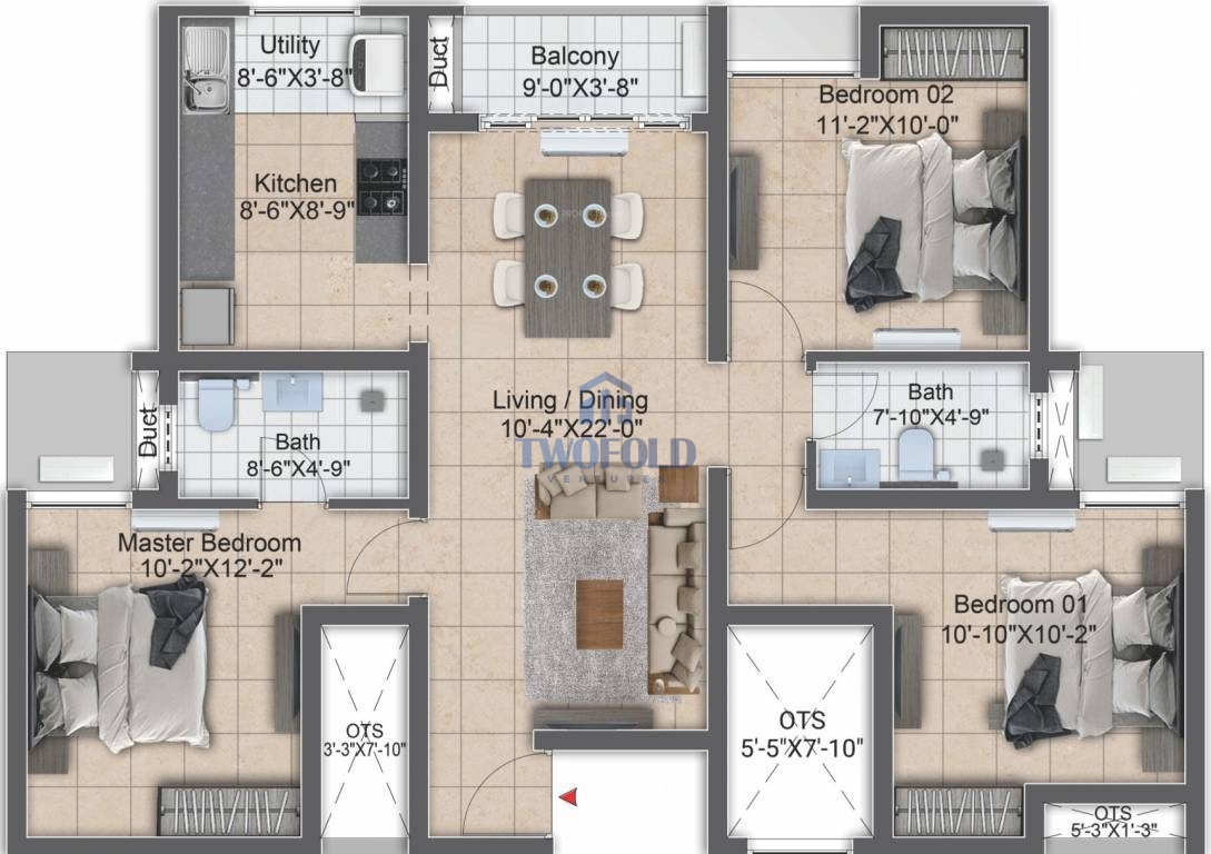 | 2BHK | 1039 Sq.ft | Will be Update | View Price | View |