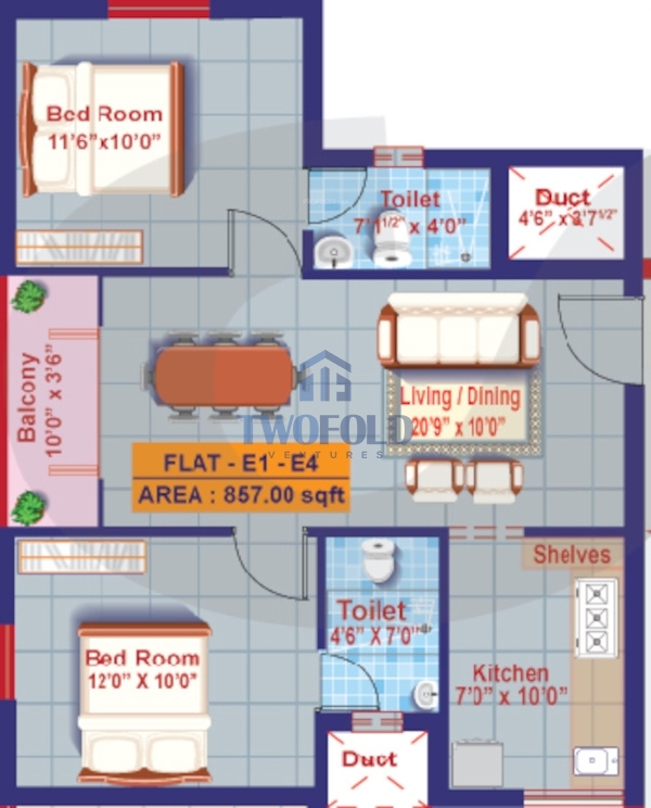 | 2BHK | 857 Sq.ft | Will be Update | View Price | View |