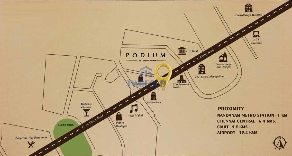Crafted for a privileged few like you, Podium is an exclusive residence that takes luxury to new heights. Spread across a vast expanse in a tower rising to 11 floors, the development features 33 premium 3 & 4BHK homes. Set amidst the city's business districts and happening destinations, in G.N.Chetty Road - T.Nagar, podium is well-connected to the city and suburbs.