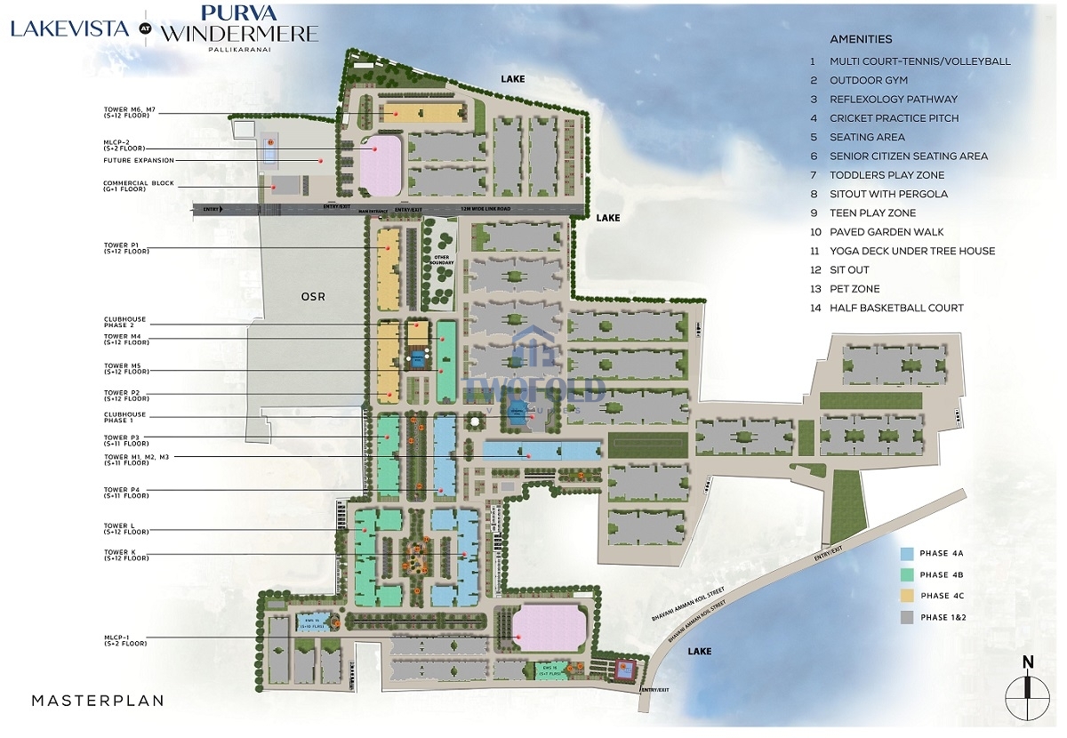 The community offers table tennis, billiards, squash court, swimming pool, clubhouse and many more to meet your recreational and fitness needs.Unwind your work stress by spending some time in the yoga room, garden, or tennis court. Keep your kids relaxed and happy at the children’s play area. Go for a walk in the wide open green spaces by the lake, experience the sense of tranquility and peace at the lakeside and aquamarine center. With all these facilities and features, Purva Windermere meets the lifestyle and expectations of premium homebuyers.This exclusive residential project located at one of the fastest-growing areas of Chennai – Pallikaranai, speaks of elegant style and design. Spread over 55 acres, this property comprises spacious apartments that promise you an unencumbered living experience.