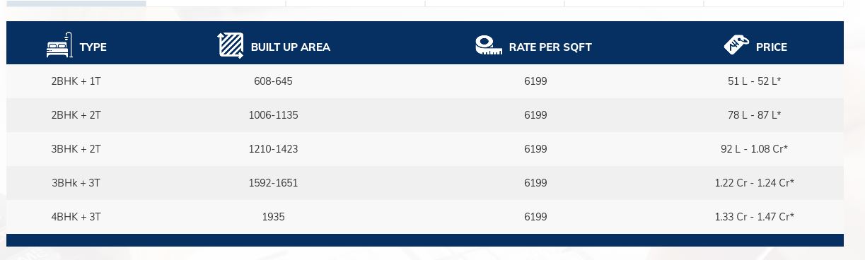 | 2BHK+1T | 608-645 Sq.Ft | Will be Update | View Price | |