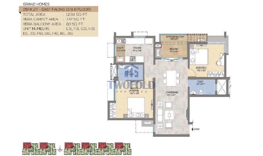 | Unit Type | Saleable Area | RERA Carpet Area | Price | Floor Plans |