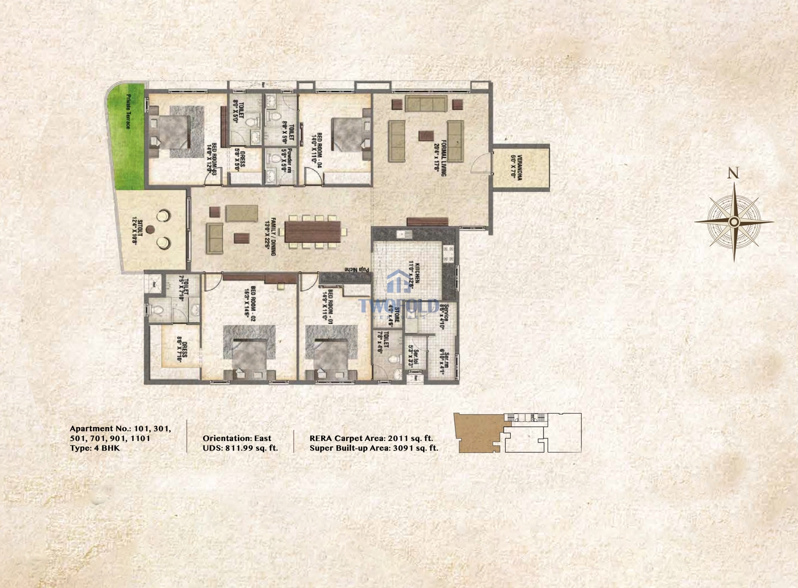 | 2BHK | 1151 Sq.ft | Will be Update | View Price | View |