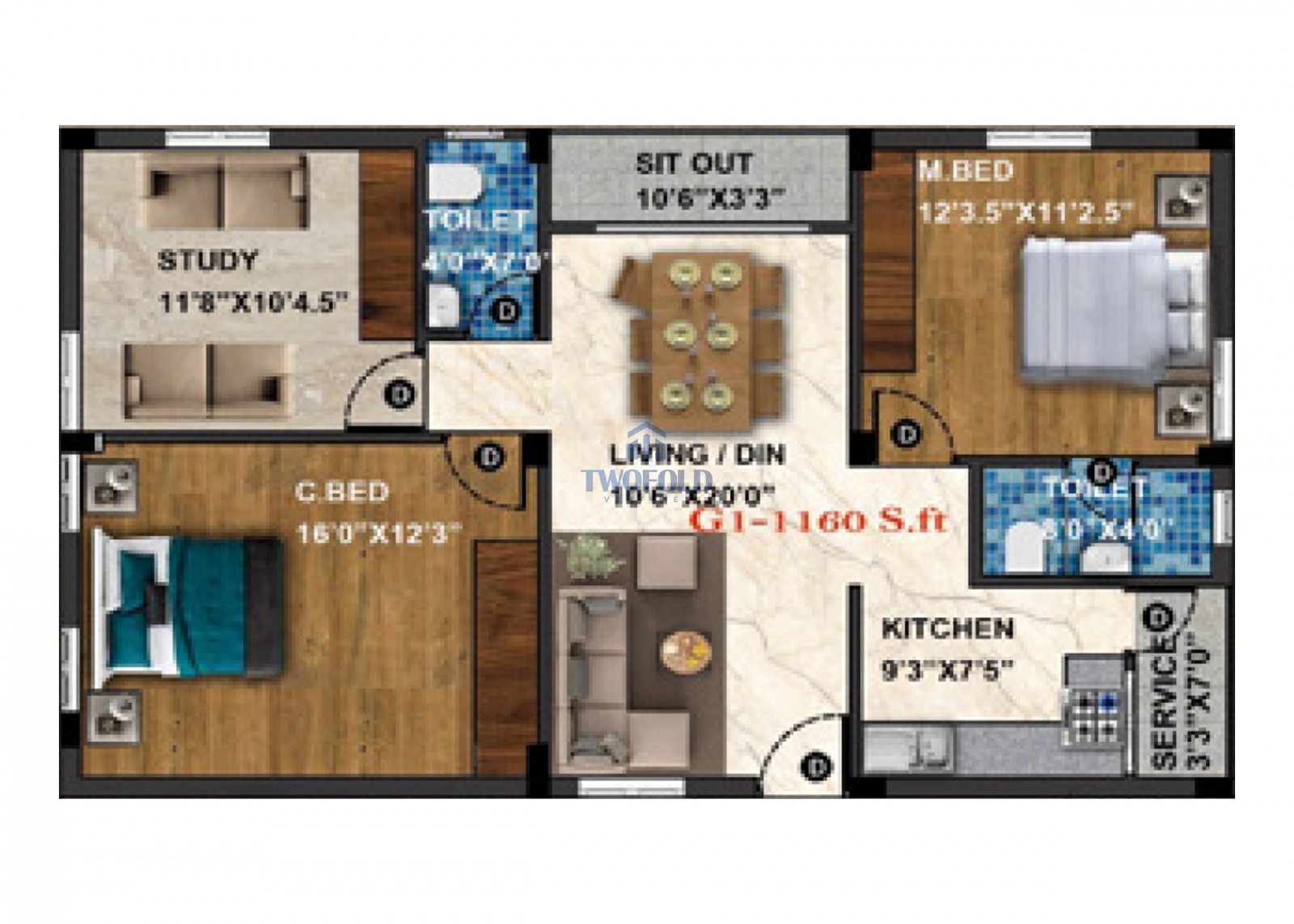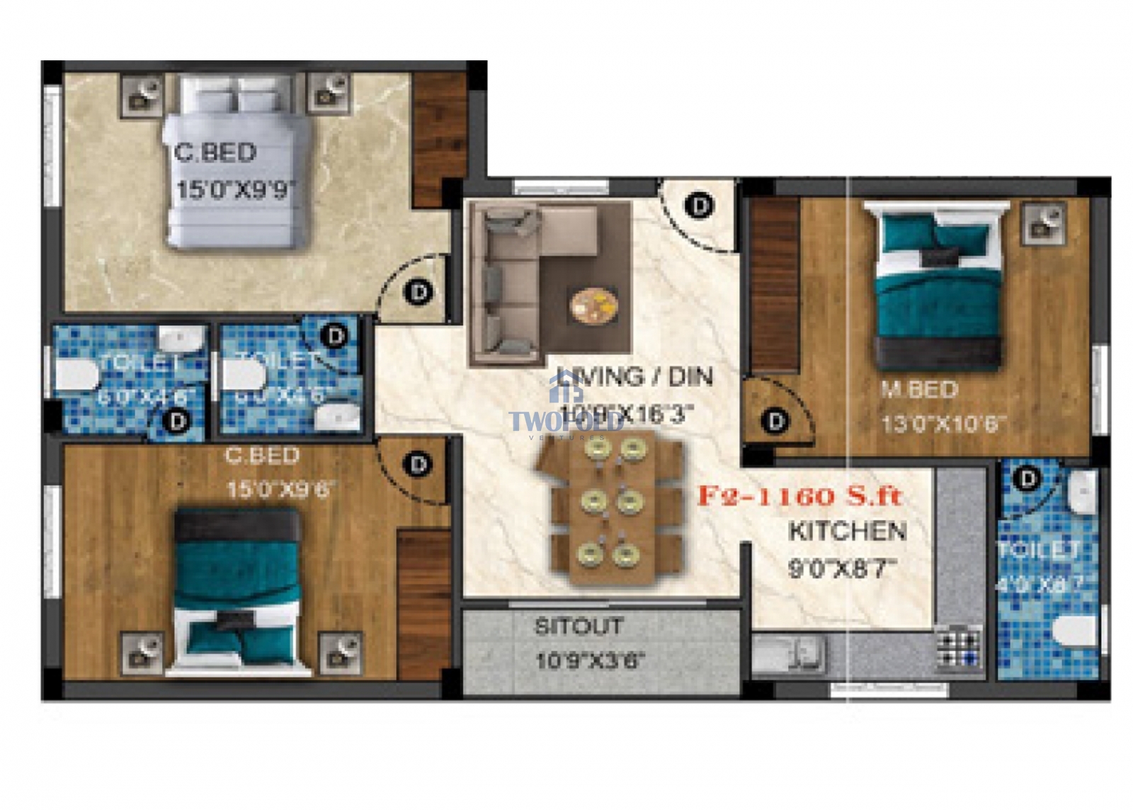 | 2BHK | 1160 Sq.ft | Will be Update | View Price | View |