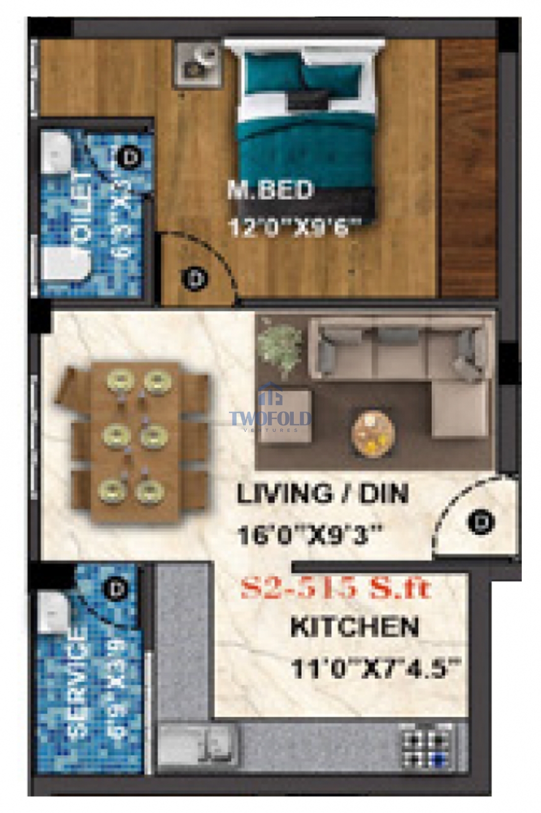 | 1BHK | 515 Sq.ft | Will be Update | View Price | View |