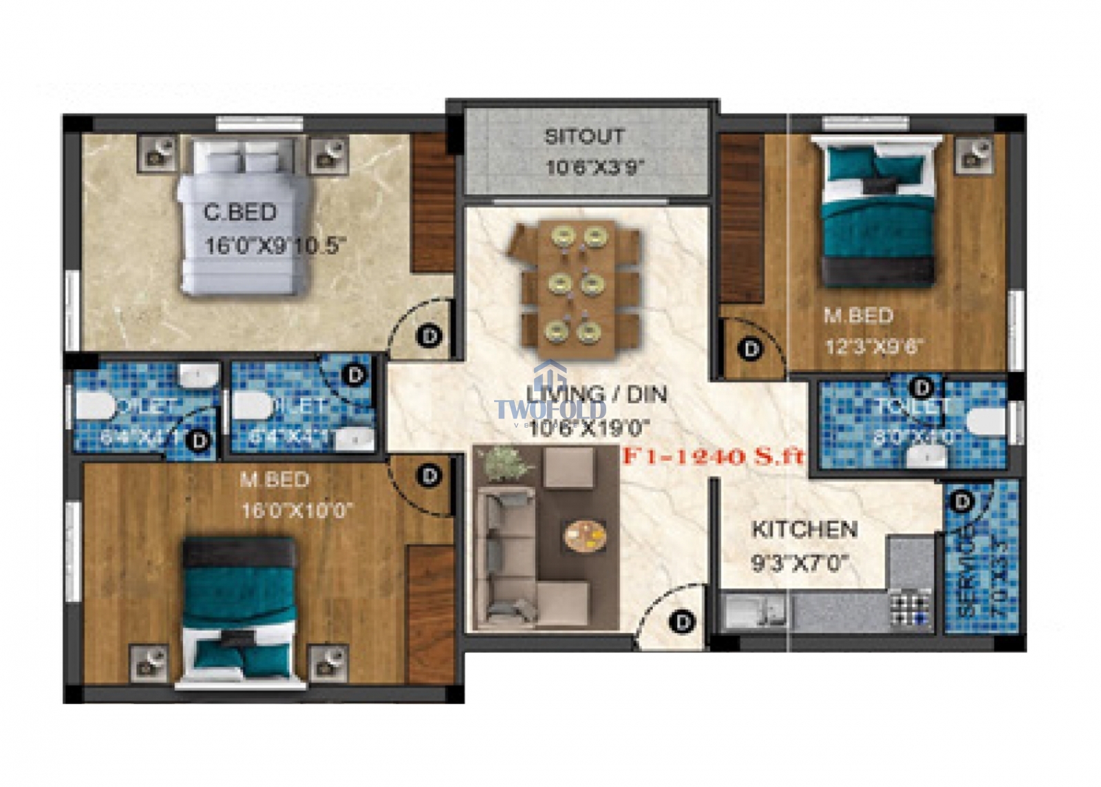 | 3BHK | 1240 Sq.ft | Will be Update | View Price | View |