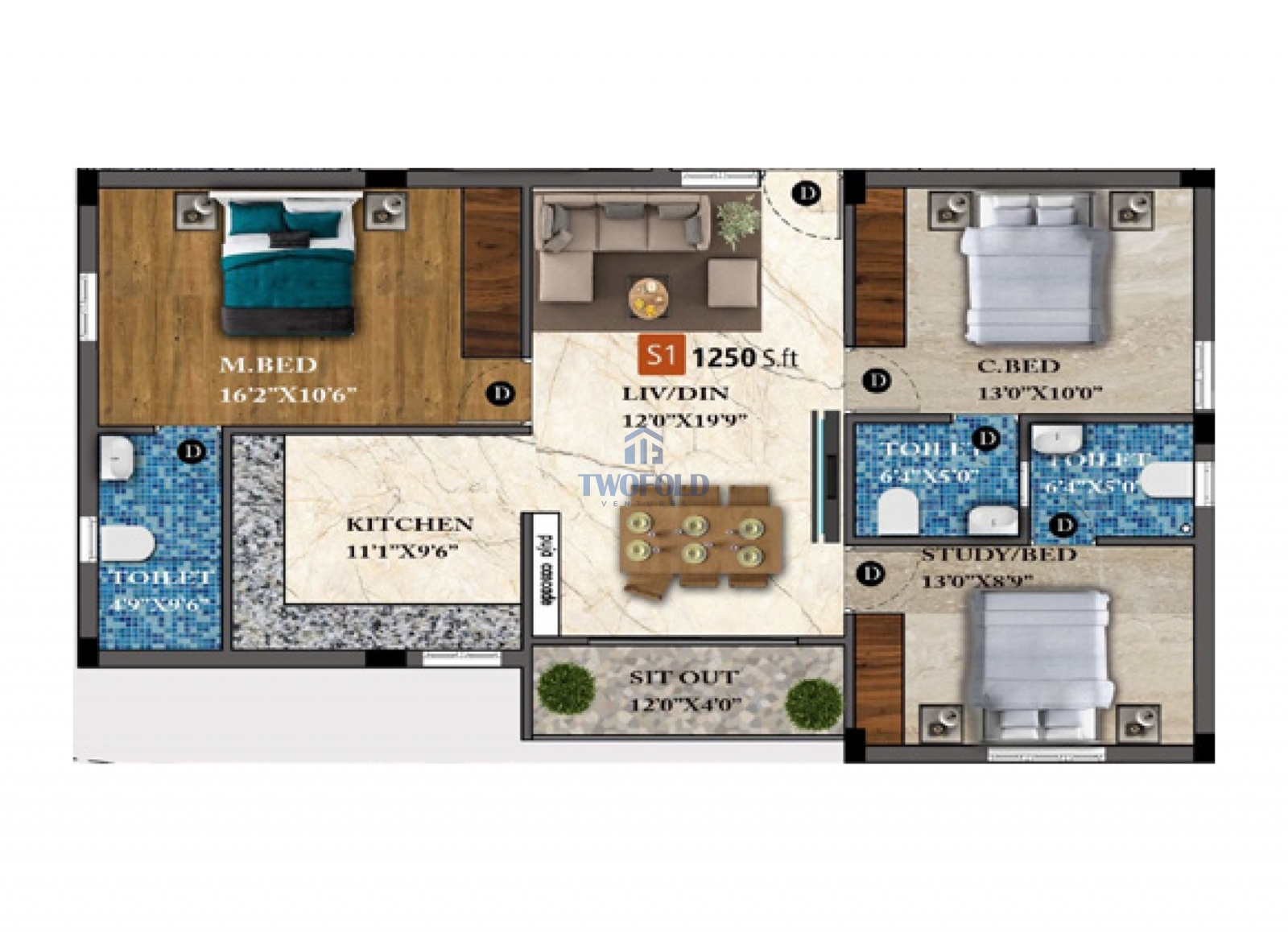 | 3BHK | 1250 Sq.ft | Will be Update | View Price | View |