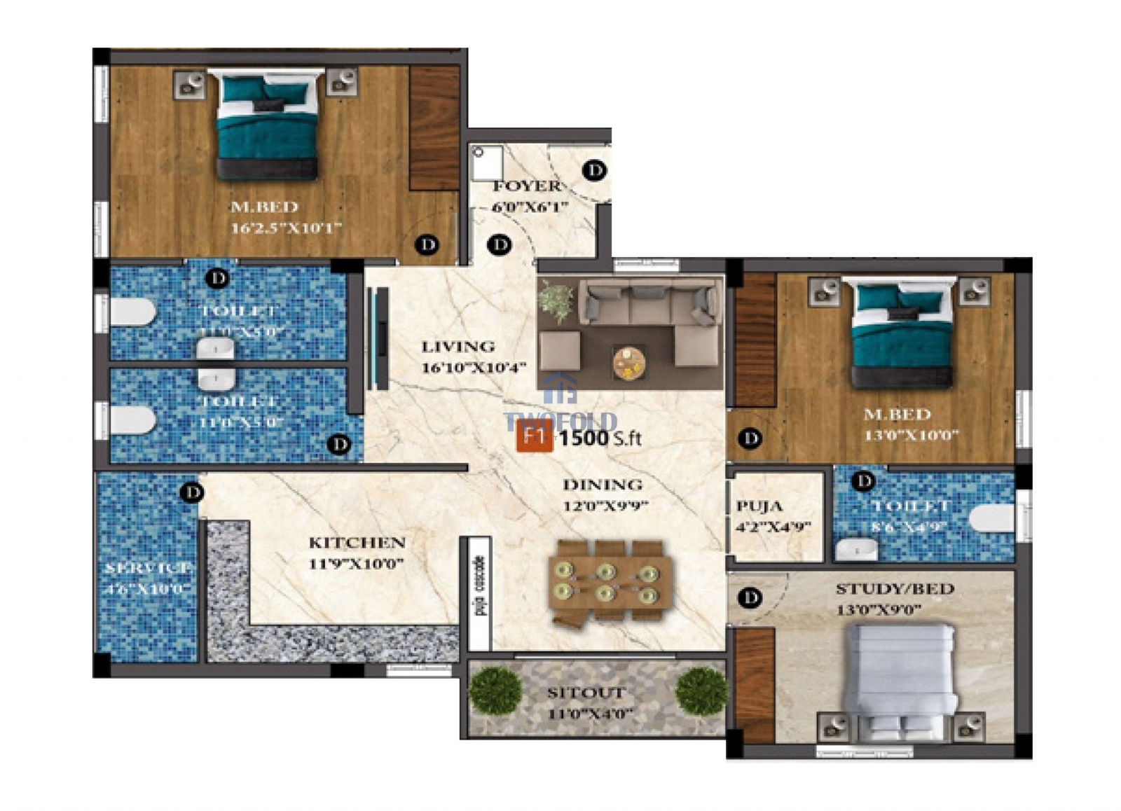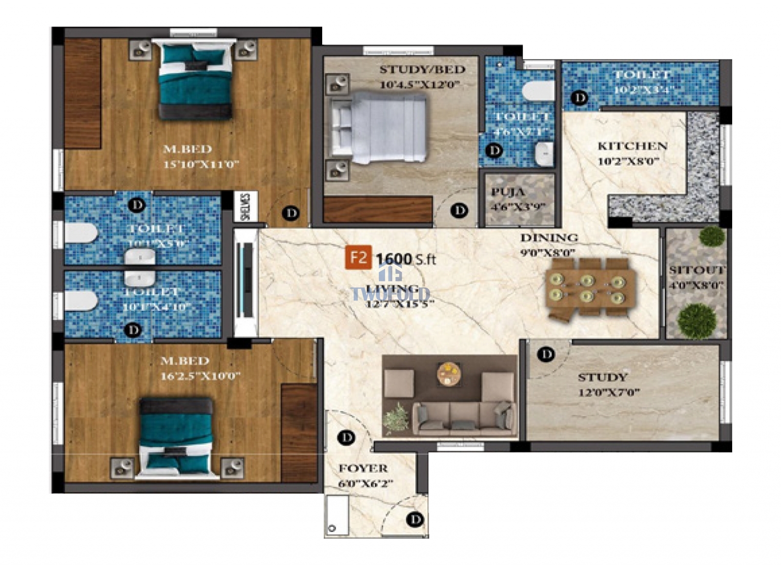 | 3BHK | 1600 Sq.ft | Will be Update | View Price | View |