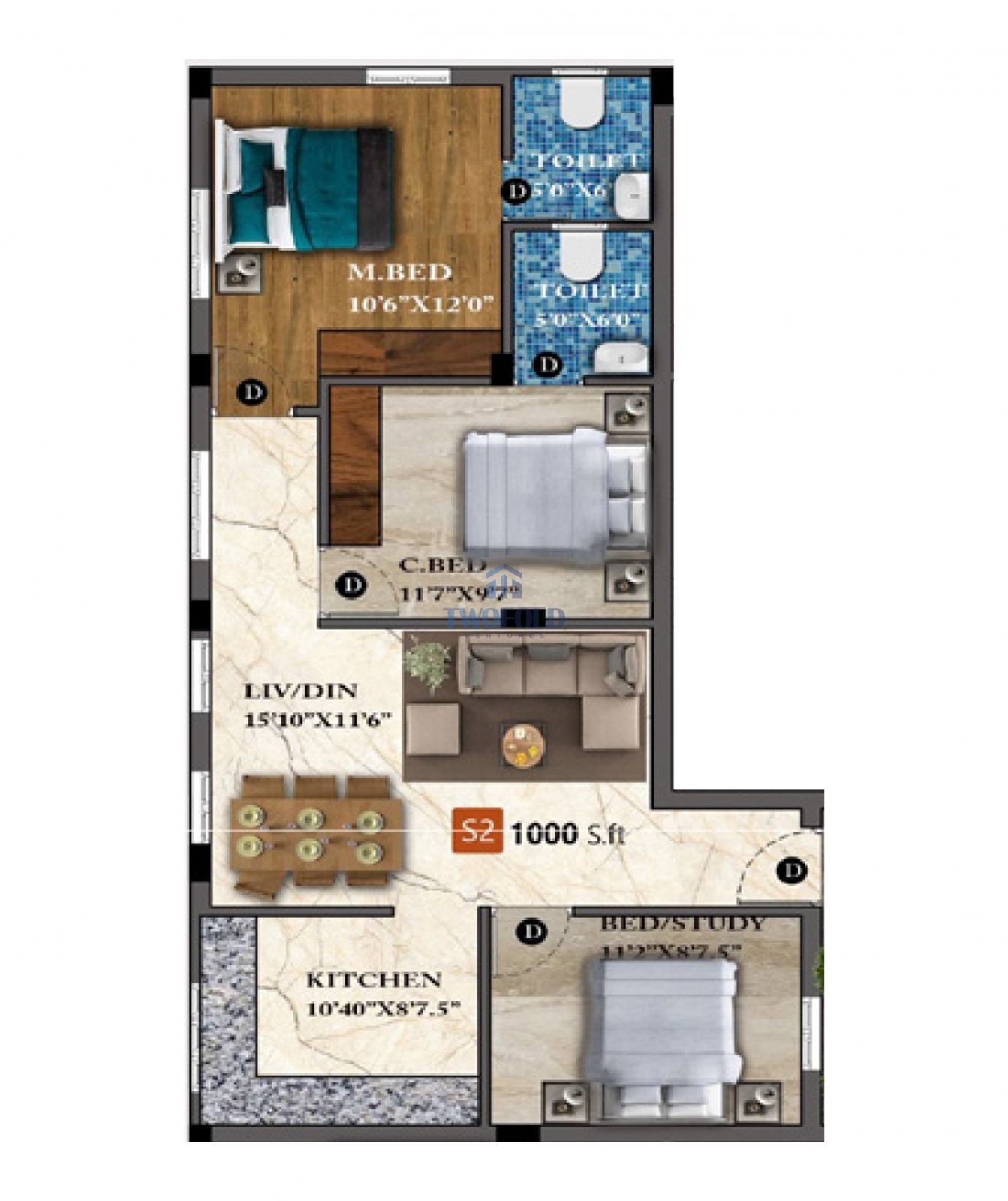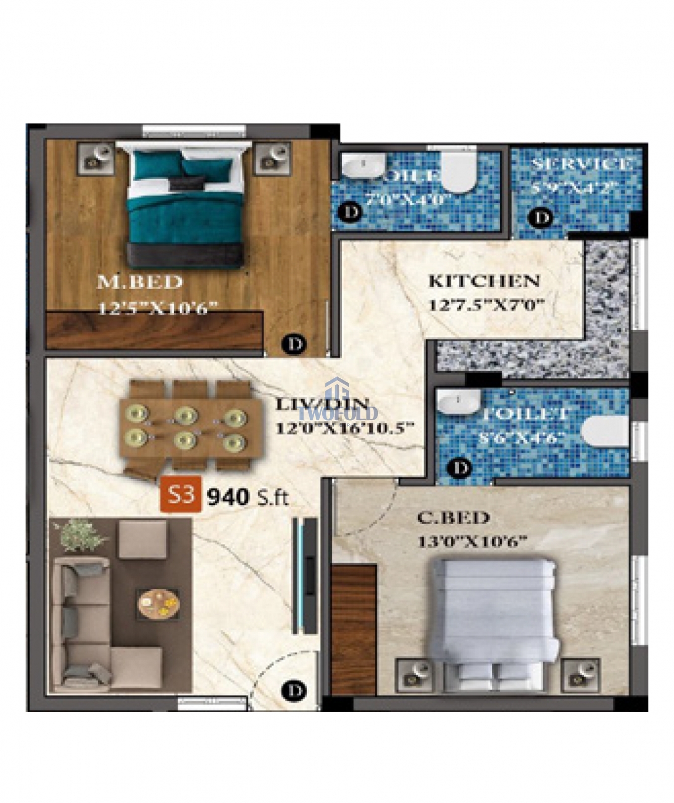 | 2BHK | 940 Sq.ft | Will be Update | View Price | View |